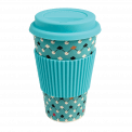 This eco-friendly travel mug comes in a bold Atomic Blue design, and is made from bamboo fibre. Complete with a silicone lid and sleeve to prevent spillages and protect hands.