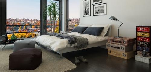 Forget carpets, this year it’s all about hardwood floors and the darker they are, the better. Dark, glossy wood will really set off the dominant colour and give your room a truly cutting-edge feel. Of course, hard surfaces should not dominate in a bedroom. Add a thick rug for a little extra warmth, and soften the rest of the room with soft furnishings and layered bedding: luxurious fabrics like silks and velvets are perfect for throw pillows and bolster cushions.