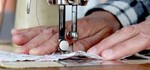 Mend a broken hem - or take up a long skirt or trousers to the correct length for your body - by folding up the edge of the fabric. Fold it backwards so the rough edge is on the inside, and secure it with pins. Then hand or machine sew all along the hem. Easy!