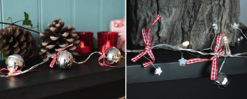 Pictured: String of 10 LED sleighbell Christmas lights - £12.95 (left), Christmas bells light garland - £12.95 (right)