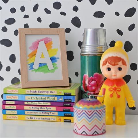 For a stunning piece of letter art, simply put some masking tape in the shape of an initial you’d like onto some paper. Let your child go wild with the crayons and then carefully peel off the tape to reveal a crisp white letter.