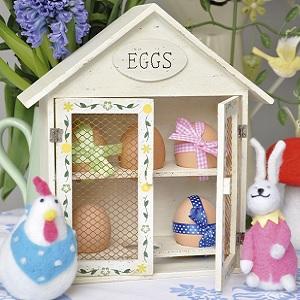 The ivory sweetheart egg holder is ideal for showing off brightly painted Easter eggs, and this cute antique egg house will look lovely in the kitchen all year round.