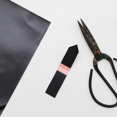 Step 3: Fold the bookmark in half widthways, with the tape on the outside. Cut two rectangles of magnetic sheet and press onto the wrong side of the bookmark, with a little gap in the centre so that it will still fold easily.