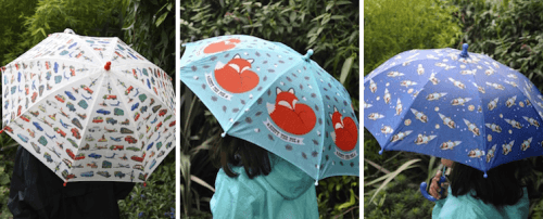 Pictured: Vintage transport design children's umbrella, Rusty the Fox design children's umbrella, Spaceboy design children's umbrella - all £8.95