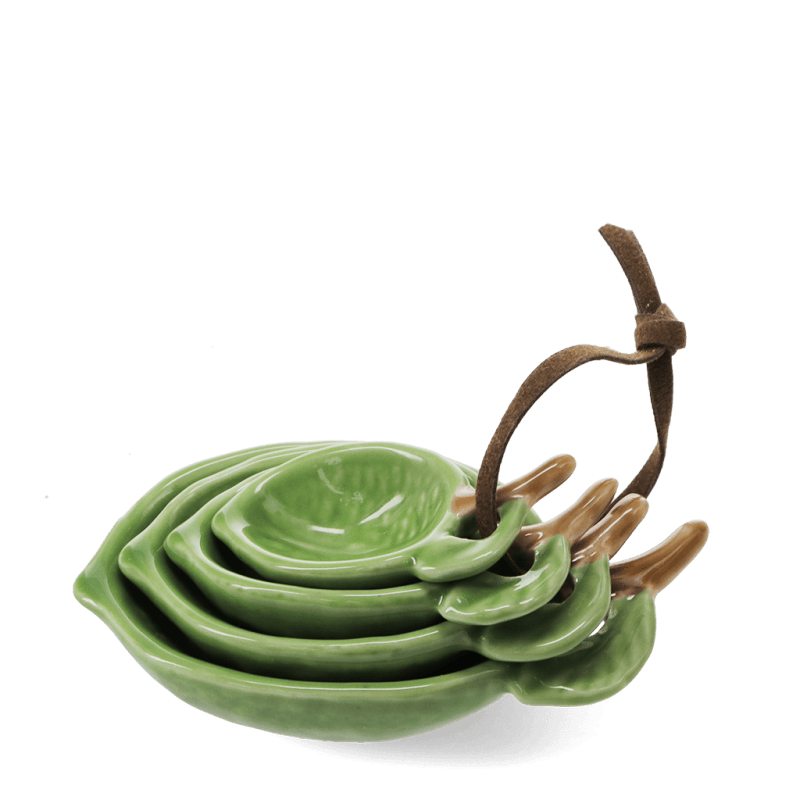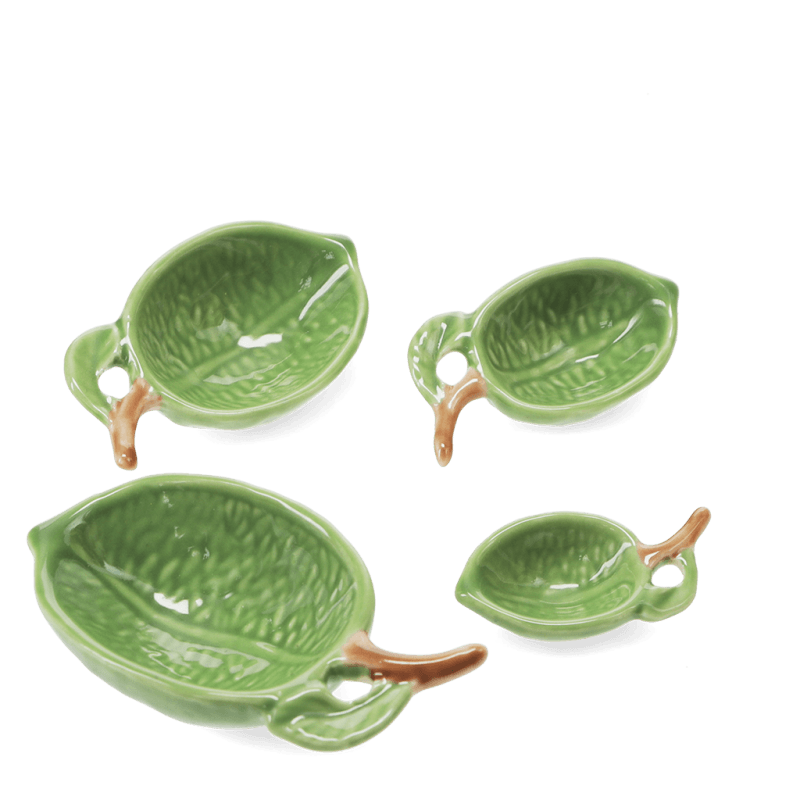 Brighten up your kitchen with this charming set of four ceramic measuring spoons, featuring a fresh and zesty lime design. Perfect for baking and cooking, they give accurate measurements and are designed to fit inside one another for easy storage.
