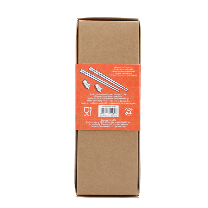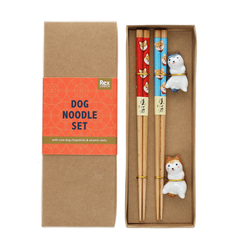 Enjoy Asian cuisine the authentic way! This sweet noodle set features adorable dog-shaped chopstick rests and pairs of Japanese-style wooden chopsticks, each featuring cute dog illustrations. A thoughtful gift set for dog lovers and fans of Japanese cuisine.