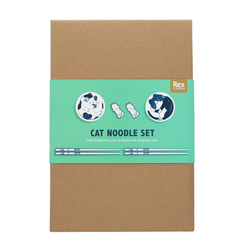 This charming noodle set features adorable cat-shaped chopstick rests, shallow bowls for sauce dipping or serving of appetisers, and pairs of Japanese-style wooden chopsticks, each featuring beckoning cat illustrations. A thoughtful gift set for cat lovers and fans of Japanese cuisine.