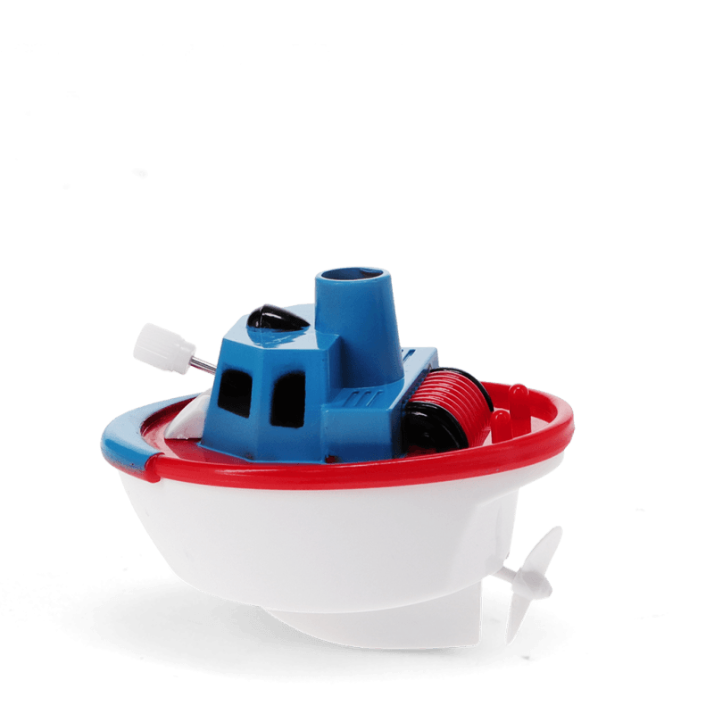 Lustiges Aufziehboot für Kinder, ideal zum Spielen in der Badewanne oder im Planschbecken. Nach dem Aufziehen des Uhrwerks mit dem leichtgängigen Aufziehmechanismus und dem Loslassen im Wasser fährt das Boot von selbst los.