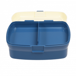 Diese Lunchbox in unserem coolen Haifisch - Design hat ein praktisches, herausnehmbares Fach mit Unterteilung.