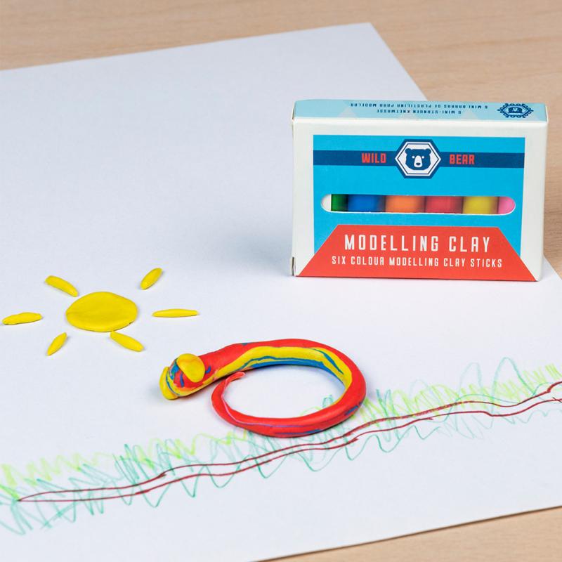 Mini-Packung im Wild Bear - Design, gefüllt mit sechs farbigen Stangen Knetmasse.
