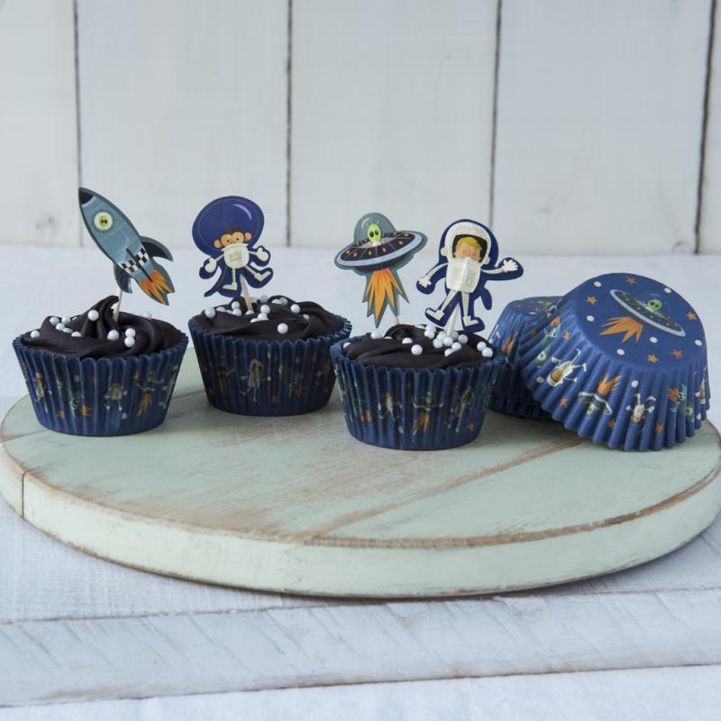 Für außerirdischen Backspaß: originelles Muffin Set, mit Figuren im Space Adventure Design: