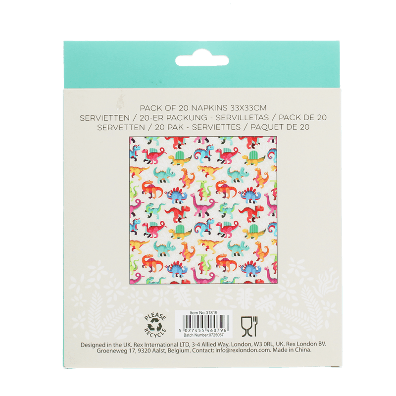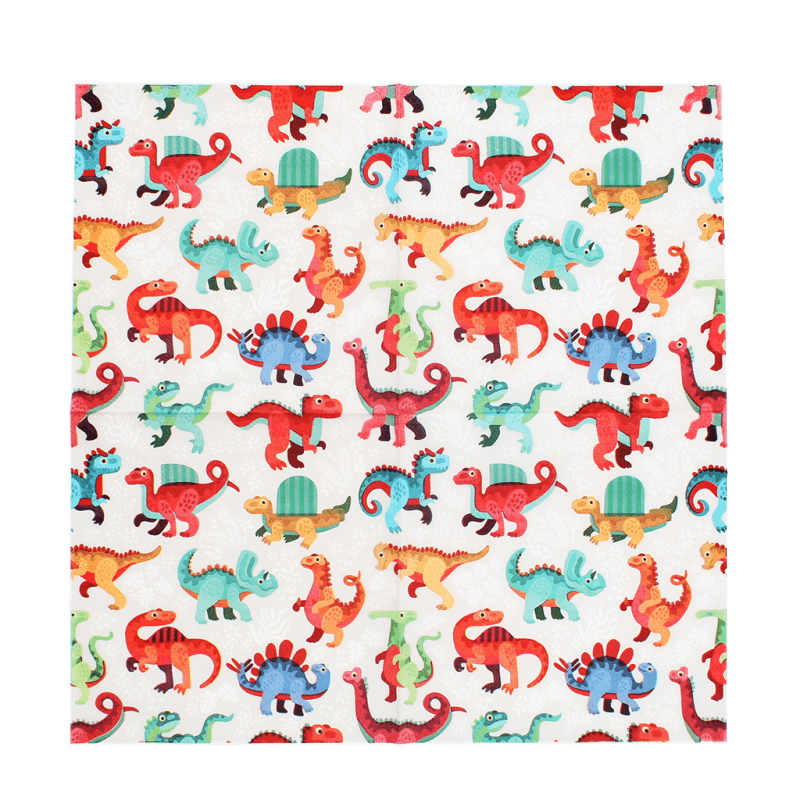 20 Servietten, jede mit bunten Dinosauriern verziert. Ideal für Picknicks, Grillpartys und Kindergeburtstage.