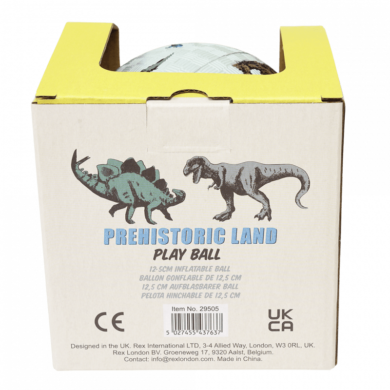 Ein aufblasbarer Ball in hellblau, bedruckt mit den Dinosauriern aus unserem Prehistoric Land - Design.