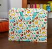 Diese Aufbewahrungstasche ist eine weitere Ergänzung in unserer Kollektion der meistverkauften XXL-Jumbo-Aufbewahrungstaschen, hier in Weiß und mit einem Muster aus blauen und grünen Gänseblümchen verziert.