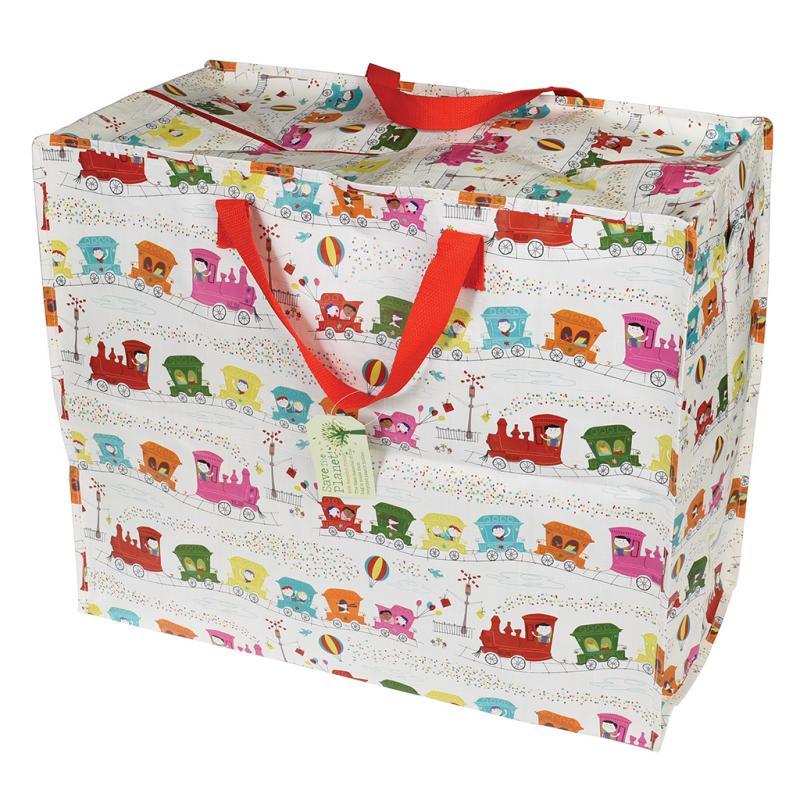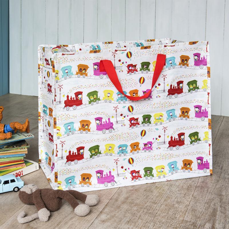 Cute and bright design. I adore these bags, we use them for storage in the loft, hiding the ironing pile, towels, bedding, all sorts! I pick them up by the corners rather than the handles as they can tear. We are a family of 6 and I have maybe 15 bags, they are so useful.