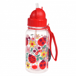Covered in charming ladybirds, children will love refilling this reusable water bottle! It has an integrated straw for mess-free sipping and a loop handle for easy carrying.