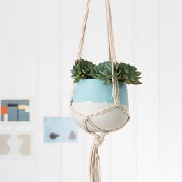 SMALL AQUA MARINE DIPPED MACRAME PLANT POT