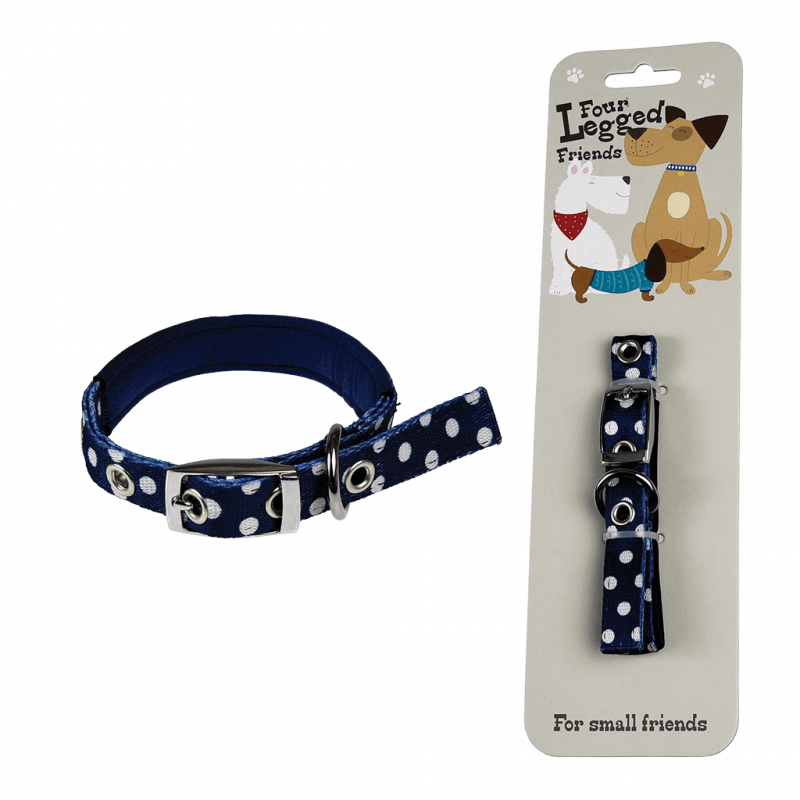 Perfect for dogs whether male or female, this understated blue polka dot collar is a cute little addition to your walks.