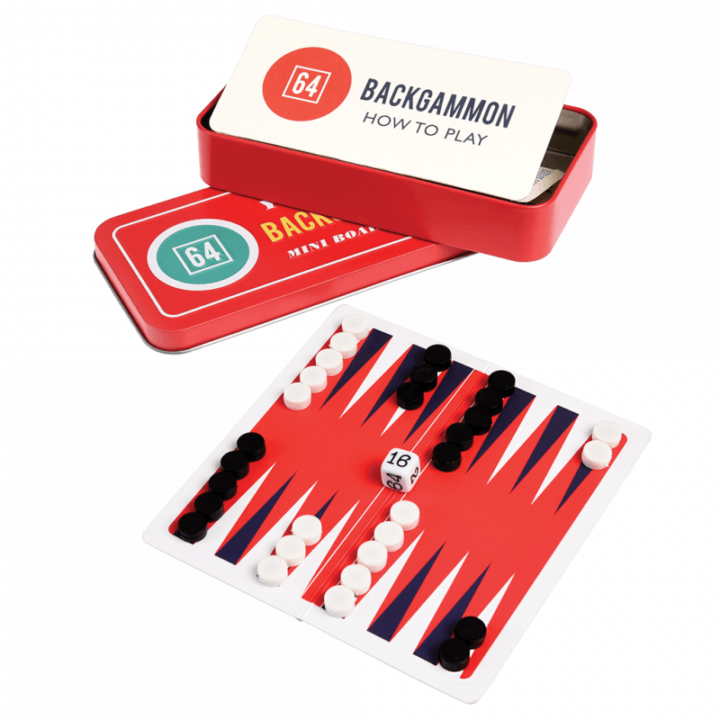 Travel games are an essential on long journeys with friends and family, and backgammon is always a favourite. In a handy tin, this set includes: