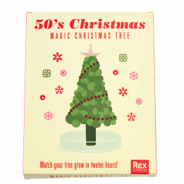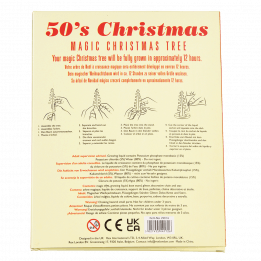 Un petit cadeau de Noël amusant et inhabituel de notre collection de Noël des années 50. Assemblez les pièces de cet arbre de Noël magique, puis versez le liquide de croissance dans la base. Par le processus de cristallisation, l'arbre poussera alors tout seul en environ 12 heures !