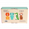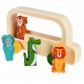 Un bus jouet en bois avec quatre passagers animaux de notre design Colourful Creatures.