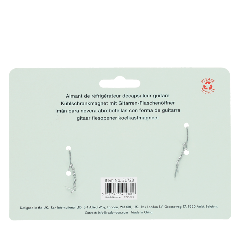 Aimant de réfrigérateur en forme de guitare rock, idéal pour ajouter une touche rock'n'roll à la cuisine d'un fan de musique. Fabriqué en métal uni avec des frettes et des cordes gravées pour plus de détails, il est bien plus qu'un simple objet décoratif : il fait également office de décapsuleur pratique, à la fois élégant et fonctionnel.
