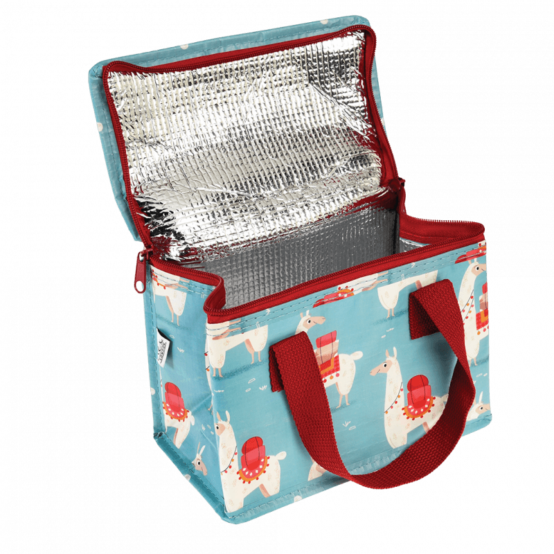 Sac à repas lama en plastique recyclé . Sac à lunch isotherme / cool avec fermeture à glissière et poignées de transport.