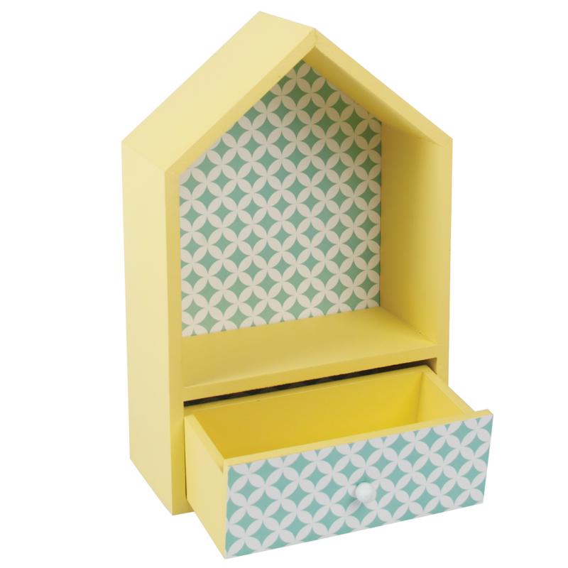 MAISON DECO JAUNE EN BOIS AVEC UN TIROIR