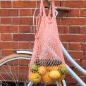 Ce joli sac à ficelles corail a beaucoup de flexibilité, de style et de résistance. Parfait pour faire les courses!