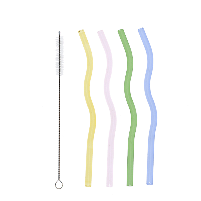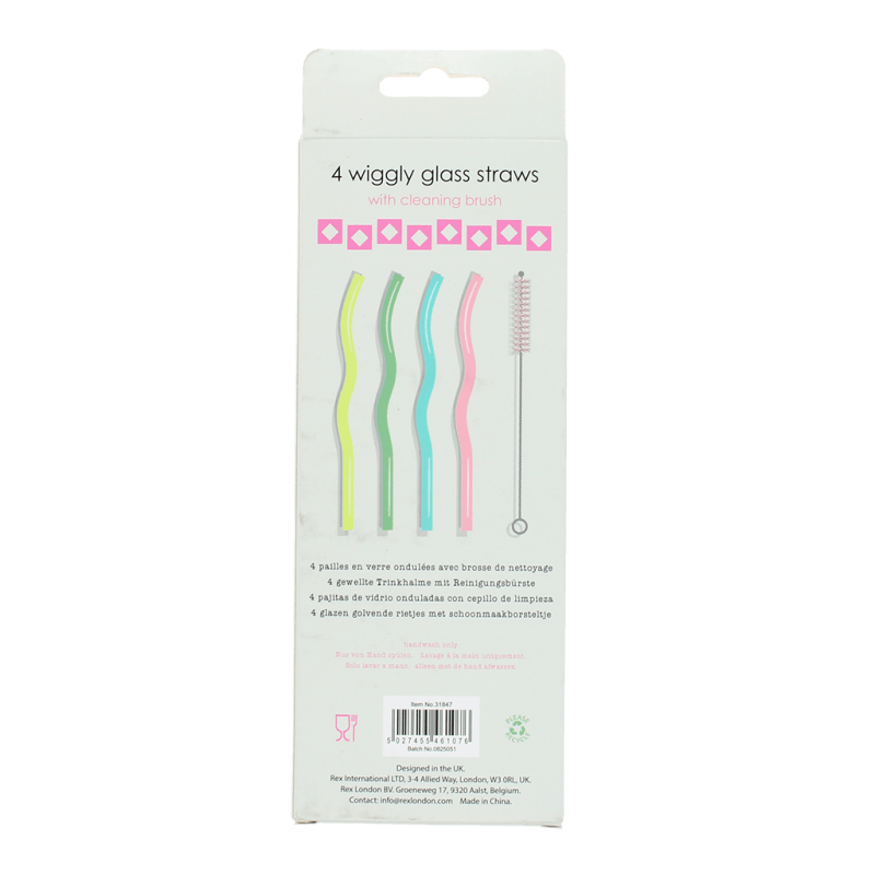 Glass straws with cleaning brush (set of 4) - Wiggly (multi-colour)