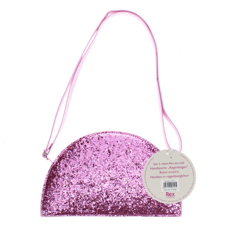 Bright, sparkly and party-ready, this rainbow handbag is the perfect blend of fashion and fun. Made from faux leather and covered in rainbow stripes, it adds a colourful shimmer to any party outfit.