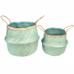 Large seagrass belly basket - Turquoise