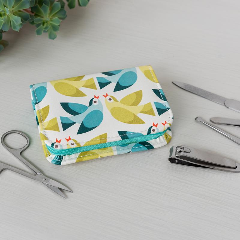 This travel-friendly manicure set contains all you need to keep your nails neat and tidy. The five handy tools are presented in a pretty Love Birds zip-around case.