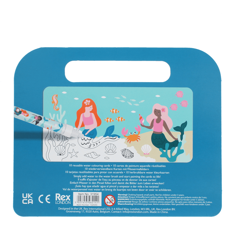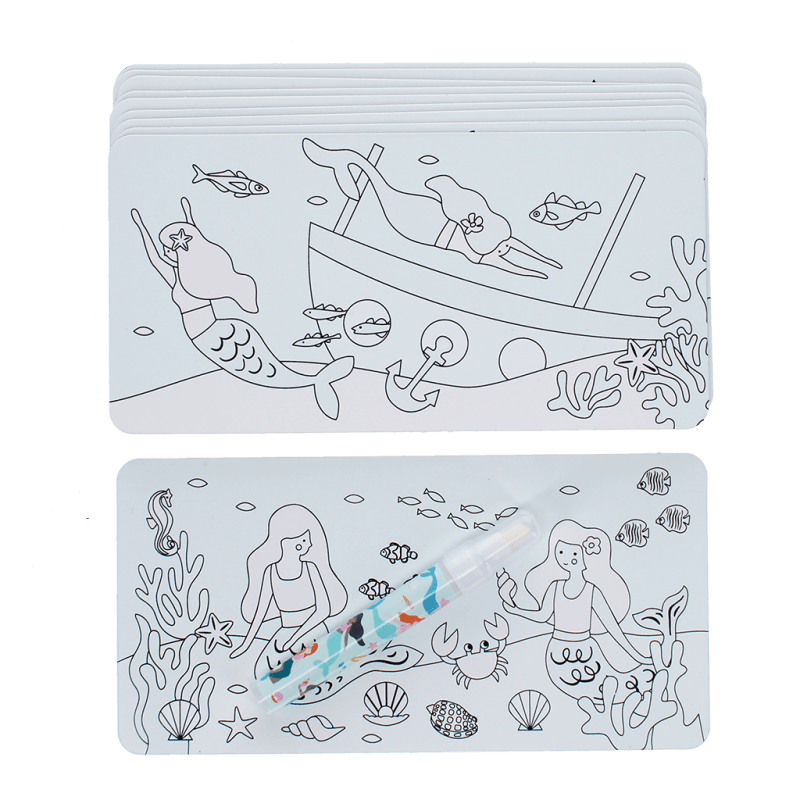 Bring adorable mermaids to life with this mess-free magic water colouring card set. Simply brush with water to reveal bright colours and charming sea creatures on every card. Once dry, the colours fade away so children can enjoy colouring them again and again.