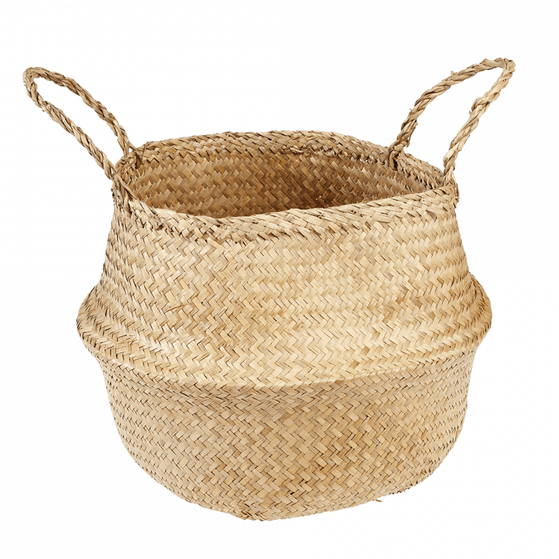 This handwoven basket is perfect for stylish storage in any room from the bathroom to the kids' playroom. You can use it two ways; turned up with handles for maximum storage size, or turned down to better display contents. Also available in a large size.