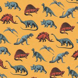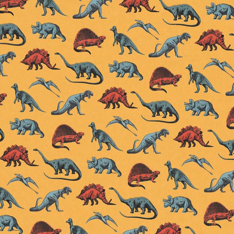 Prehistoric Land gift wrap with fun comic book style dinosaurs - perfect for kids!