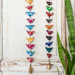 Recycled cloth hanging decoration (1m) - 30 birds & bell (assorted colours)