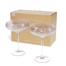 Scalloped coupe cocktail glasses 250ml (set of 2) - Pink