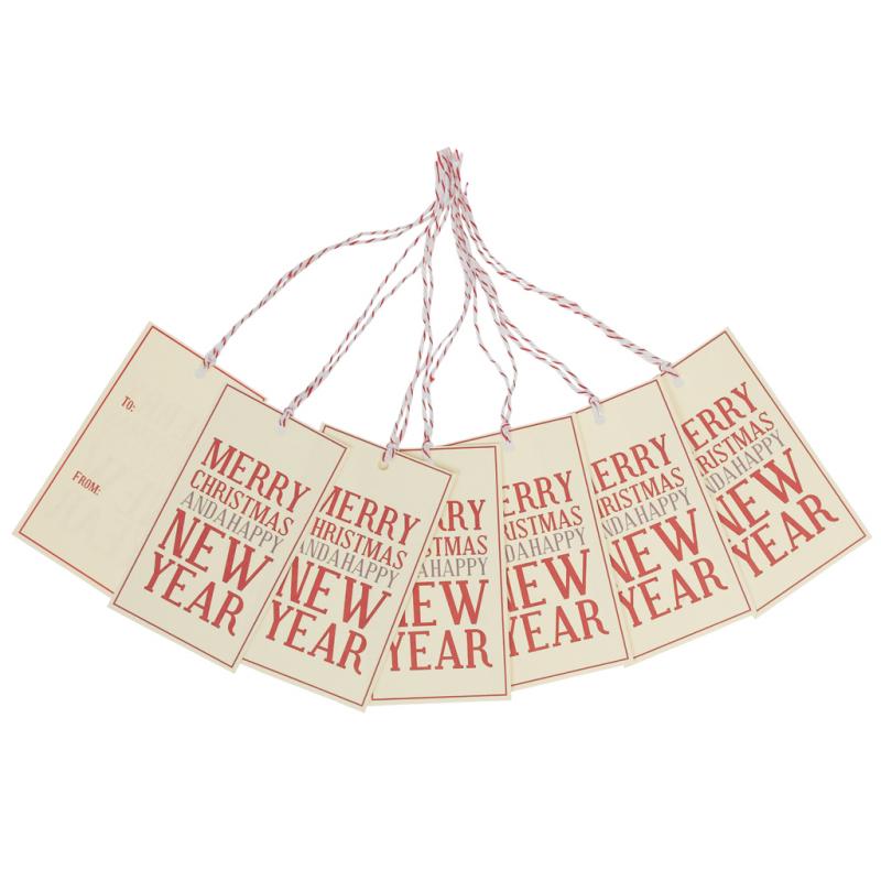 Set of six merry Christmas and a happy new year gift tags.