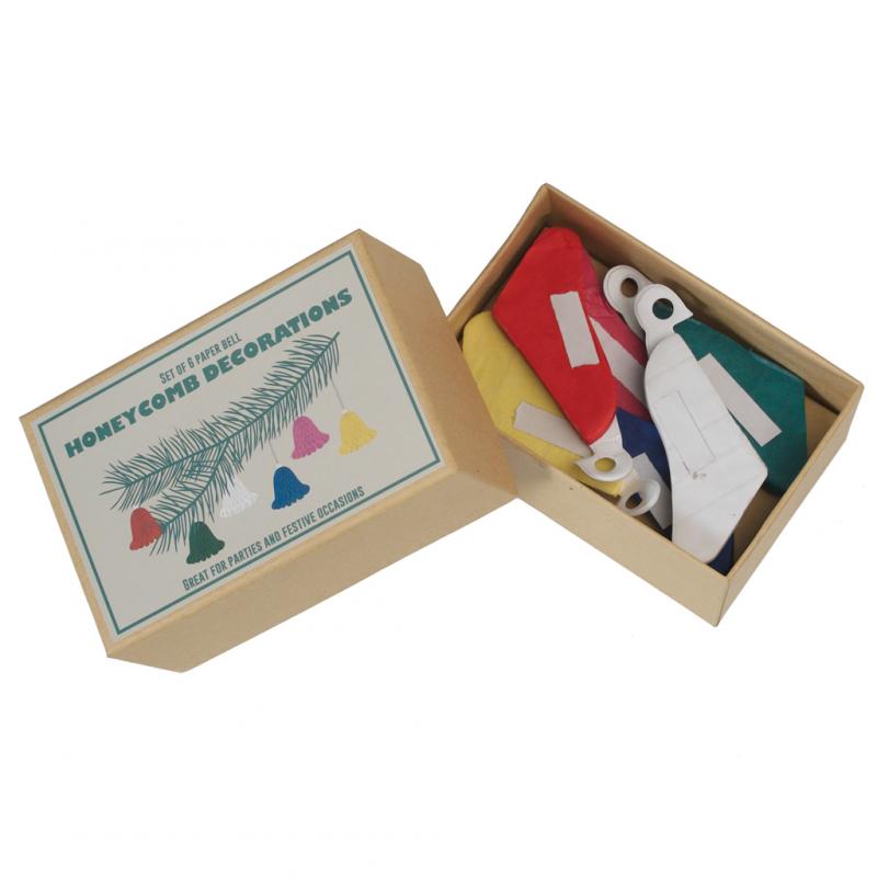 SET OF 6 PAPER BELL HONEYCOMB MINI DECORATIONS