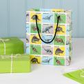 Our Prehistoric Land gift bag includes five different dinosaur illustrations with their names, perfect for dinosaur megafans! Also available in a larger size.