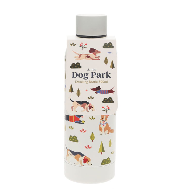 Keep drinks cool for up to 24 hours and hot for up to 12 hours in this eco-friendly water bottle. Featuring a charming dog park design, it also has a soft touch rubberlike exterior for slip-free sipping.