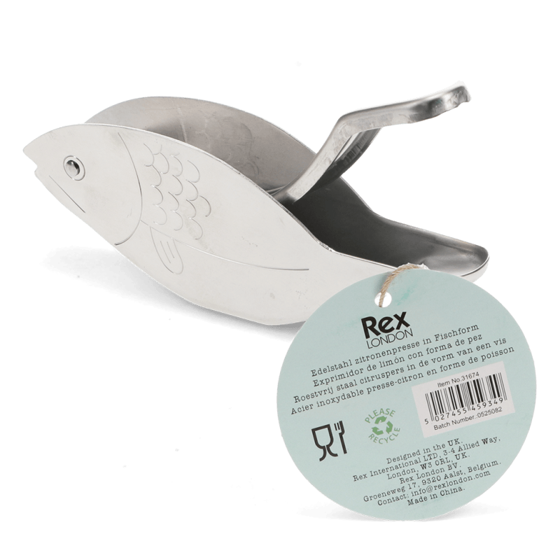 Add a burst of flavour to drinks and dinners with this fish-shaped lemon squeezer. Pop in a lemon or lime wedge and press to squeeze – the built-in grate will catch the pips for you! Made from durable stainless steel, it’s a handy little helper for cocktails, dressings and marinades.