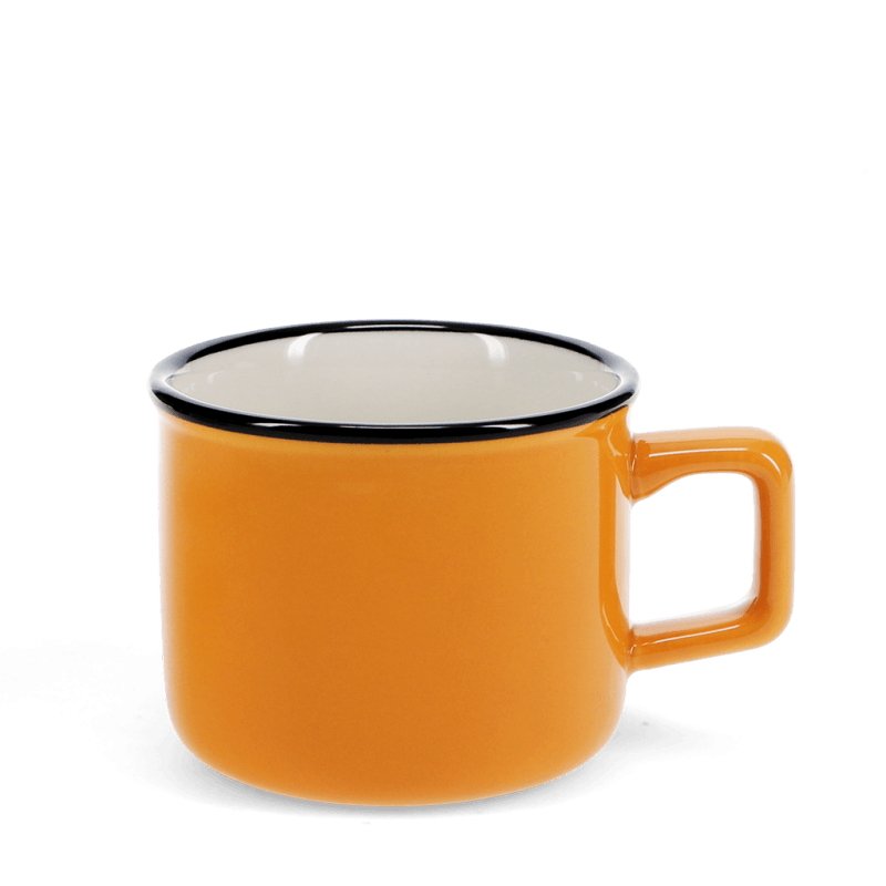A great gift for anyone who can’t get through the day without a coffee! This stoneware espresso mug has a lovely retro feel, with a glossy orange glaze and a black rim to finish it off.