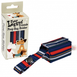 A cool stripy poop bag holder with 20 biodegradable bags. A handy gift for a dog owner!