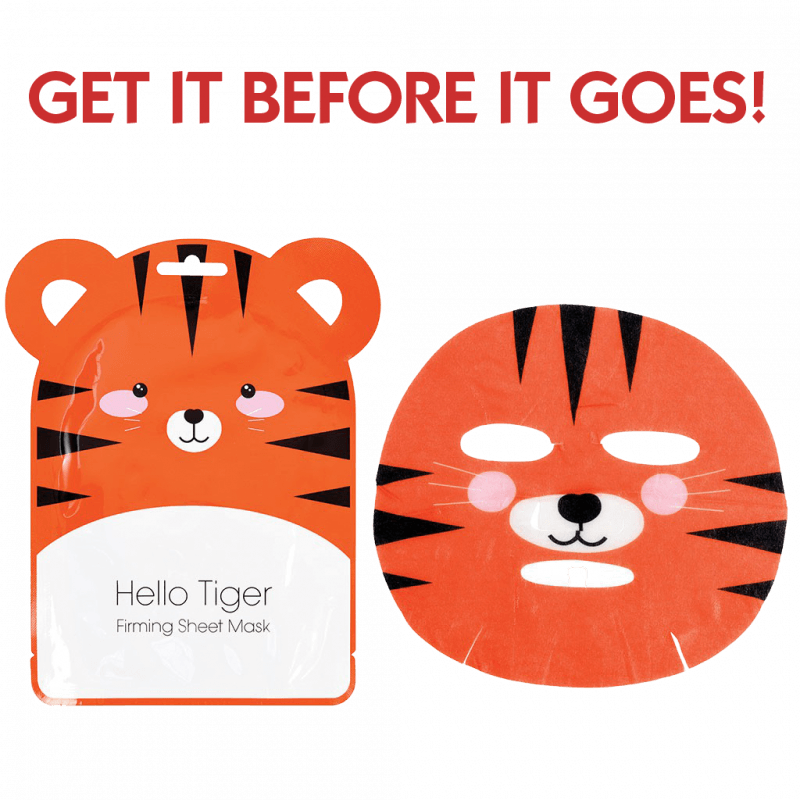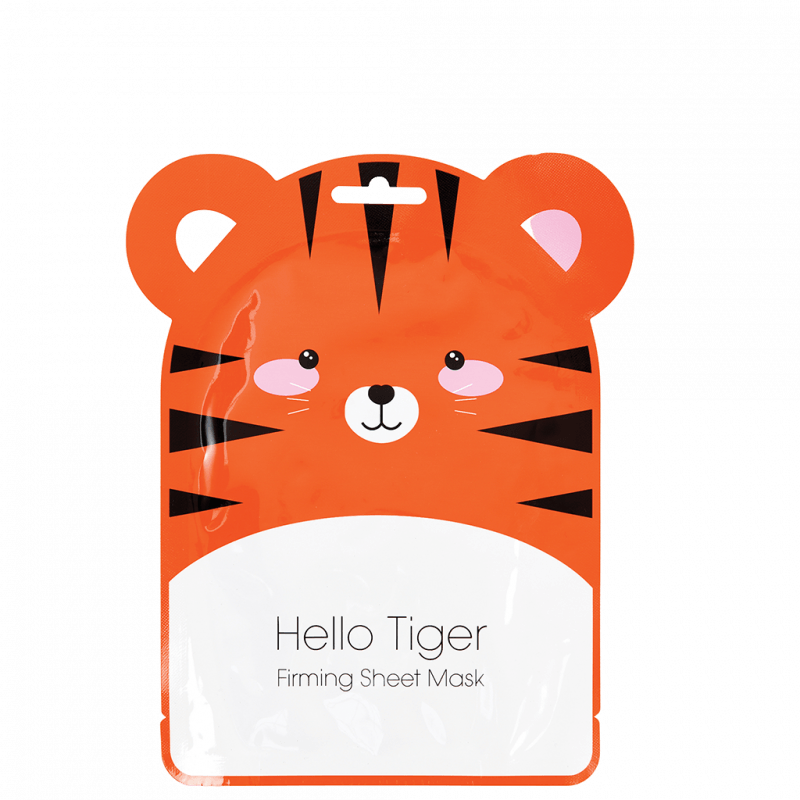 A relaxing, firming single-use sheet mask containing 23ml of nourishing cream and printed with a fun tiger design.
