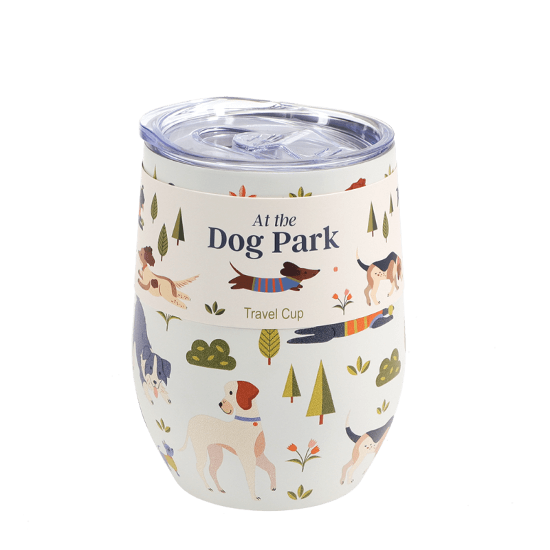 Stay refreshed in style with this Dog Park travel cup, featuring a plastic lid and sliding cover for direct sipping or use of straws. Perfect for enjoying drinks on-the-go and a great gift for anyone who loves to travel!