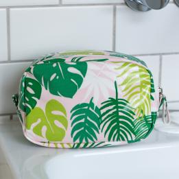 Keep your makeup and cosmetics organised with a trendy Tropical Palm oilcloth toiletries bag.