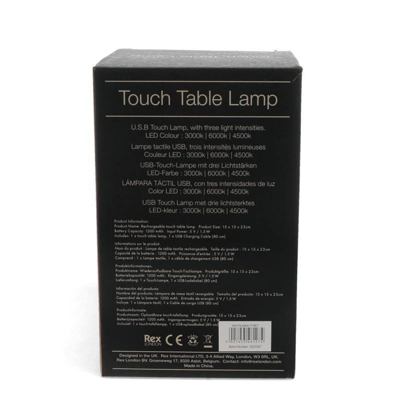 - Touch the silver button on the front to turn lamp on/off and step through the three light intensities: first: 3000K; second: 6000K; third: 4500K