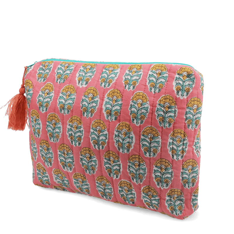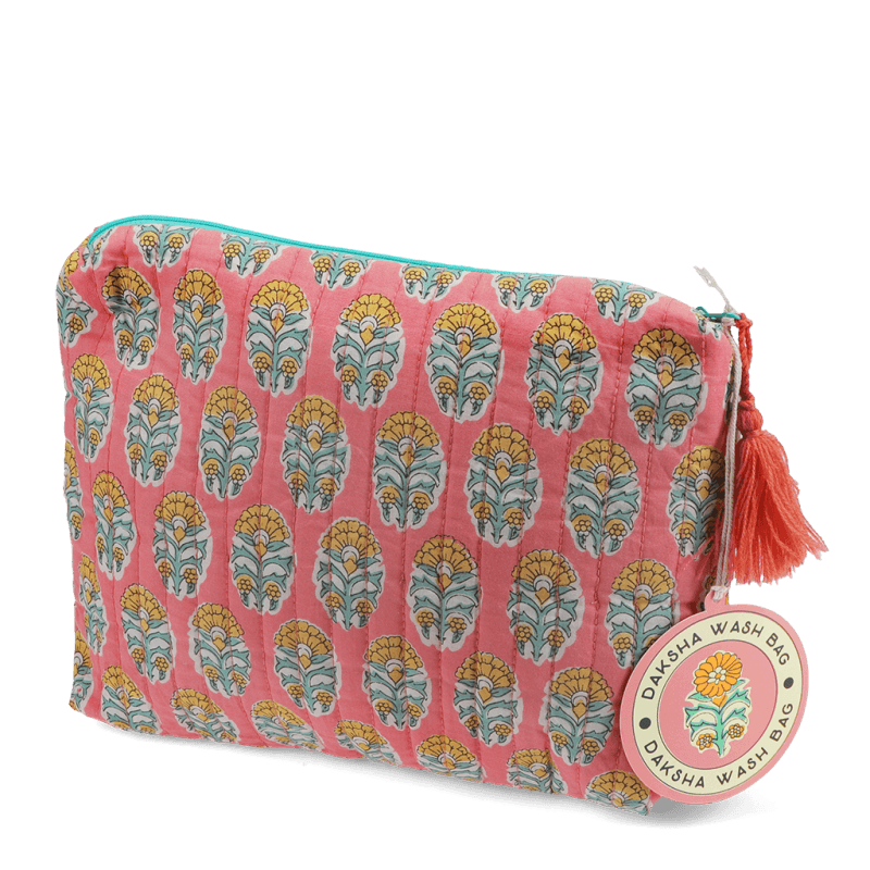 This gorgeous quilted wash bag features our Daksha floral pattern, with a teal zip and charming tassel detail. Soft and spacious, it’s great for organising toiletries and other essentials for holidays, weekends away or work trips.